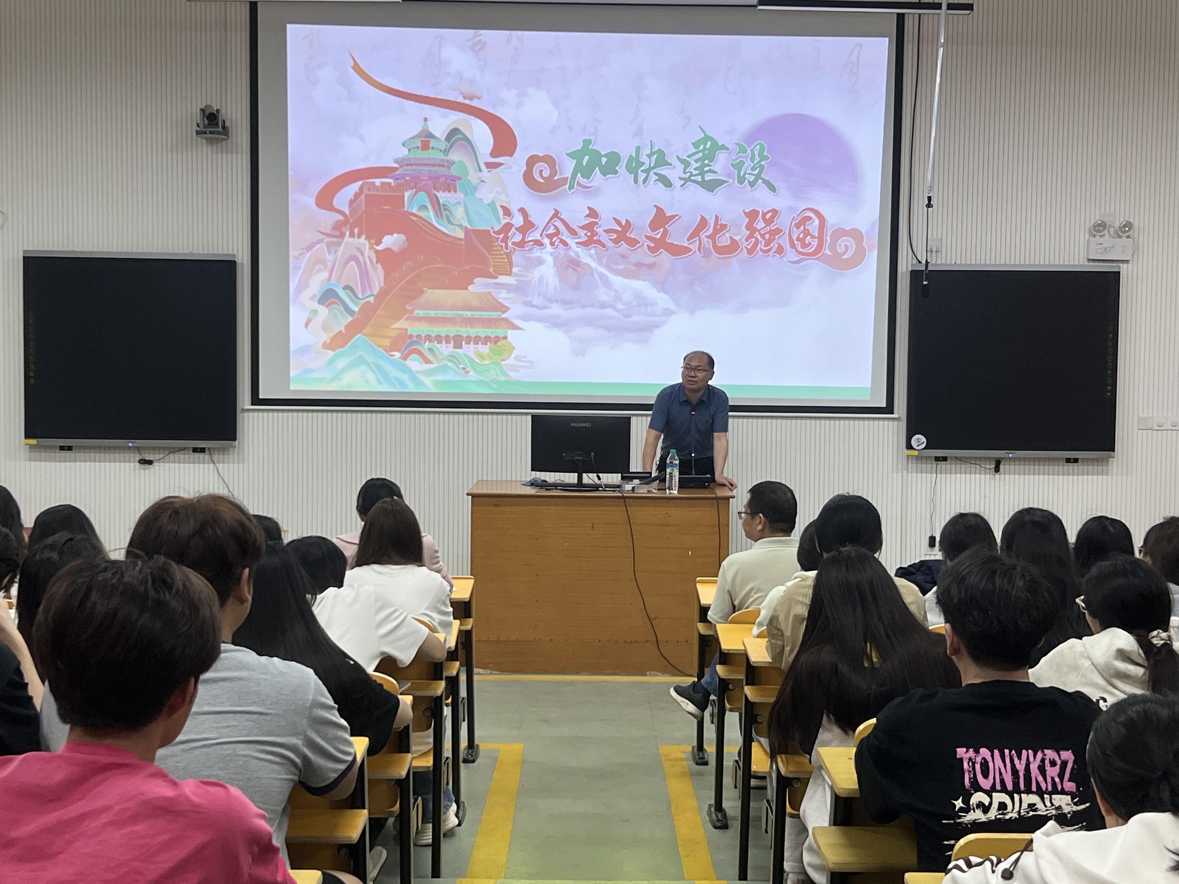 晚上,吕湘江以《加快建设社会主义文化强国》为题,为党员、党员发展对象、入党积极分子上了一堂思政课。课程从强塑国魂担当历史使命、非凡成就彰显实践伟力、坚定自信开启时代华章等方面,鼓励同学们坚定文化自信,树立远大理想,把个人的小我融入祖国的大我,与时代同步伐,与祖国同命运,与人民共进退,敢于有梦、勇于追梦、勤于圆梦,学好专业技能,练就真才实干,让青春之光闪耀在为梦想奋斗的道路上。