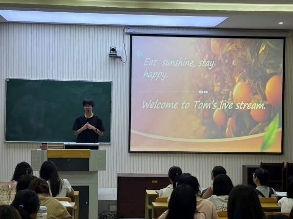竞赛分为产品直播展示与评委问答两个环节,全面考察了参赛选手的英语口语表达能力、直播控场能力及应变能力。比赛中,选手们以流利的英语、生动的讲解和自信的台风充分展示了个人风采和专业素养。评委们则从语言表达、内容创意、互动效果等多个维度进行了综合评分。