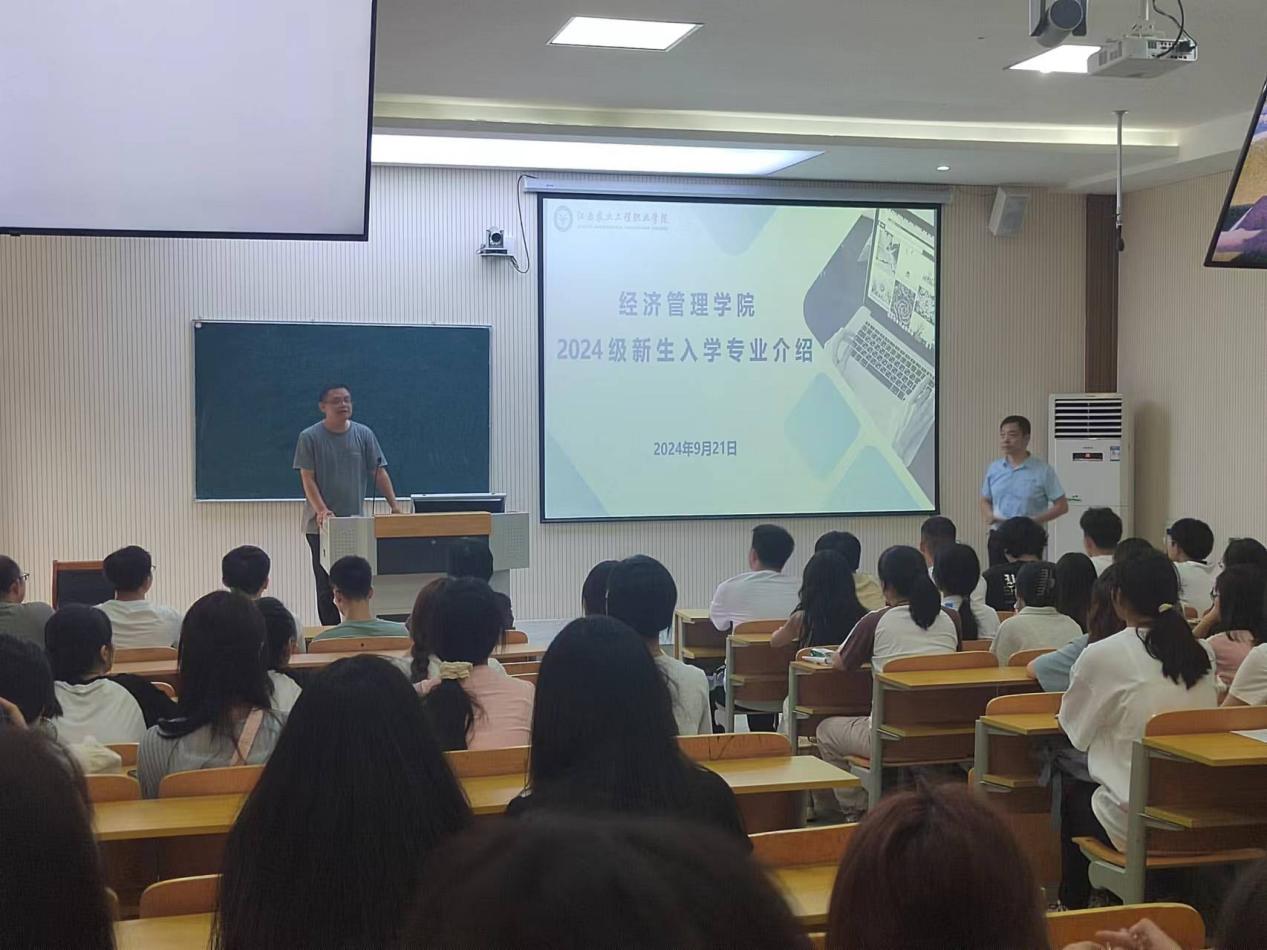为进一步帮助新生了解所学专业,明确专业学习目标,经济管理学院于9月21日上午分别在培训教室一、培训教室二举办了专业介绍会。经济管理学院党政负责同志、专业教师代表、经济管理学院新生班主任及24级全体新生参加。